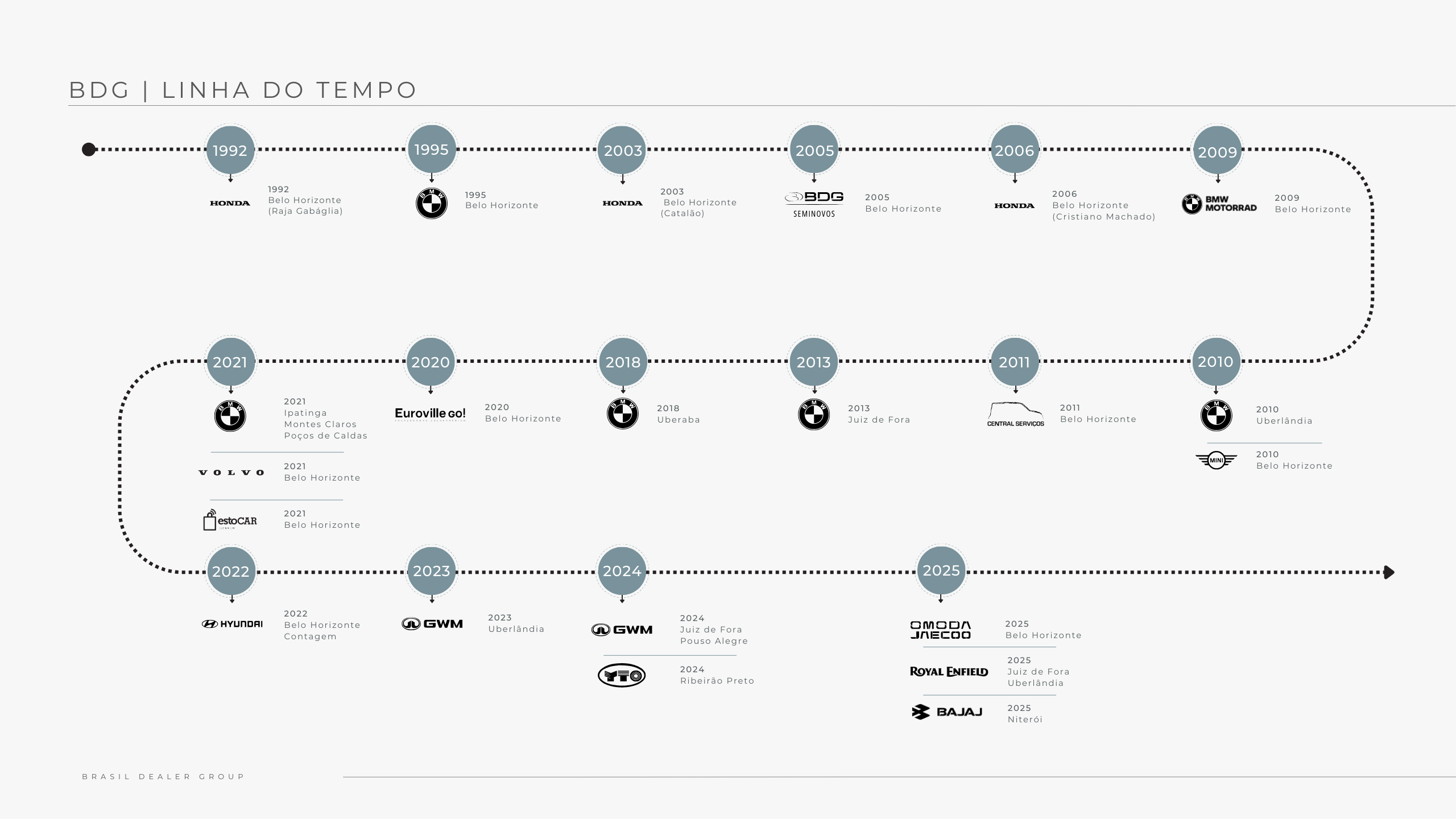 O Brasil Dealer Group S.A. (BDG) sediado em Minas Gerais, iniciou suas atividades no mercado  automotivo em novembro de 1992, com a abertura da primeira concessionária de veículos Honda  do estado de Minas Gerais (a Auto Japan), em seguida a BMW, Volvo, GWM, Hyundai, YTO, KIA, Omoda Jaecoo, Triumph, Kawasaki, Bajaj, MG Motors, Royal Enfield e Jetour.